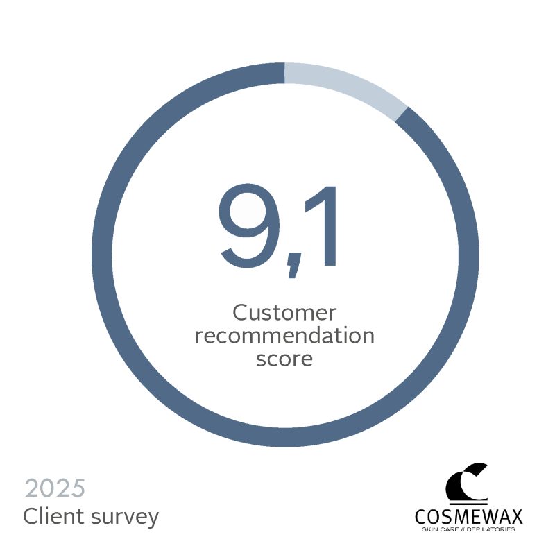 We are proud to share that #Cosmewax achieved an average score of 9.1 out of 10 in our latest customer satisfaction survey to the question: “Would you recommend our service?”